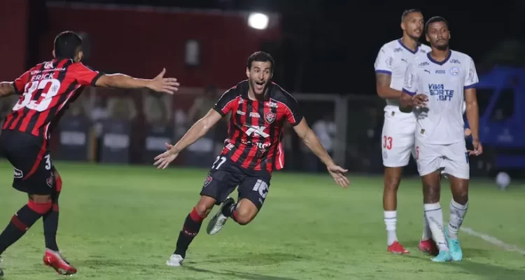 Vitória Vence o Ba-Vi no Barradão Pela 28ª Rodada do Brasileirão e Mantém Tabu Redação 16 de outubro de 2025 Destaque, Esporte, Futebol, Notícias, ultimas notícias, ÚLTIMAS NOTÍCIAS O Vitória superou o rival Bahia por 2 a 1 no clássico Ba-Vi desta quinta-feira (16), no Barradão, encerrando um jejum de sete partidas sem vitória no confronto. Os gols do Leão foram marcados por Renato Kayzer (de pênalti) e Raúl Cáceres, enquanto Tiago descontou para o Esquadrão.Com o resultado, o Vitória alcança 28 pontos, mantendo-se na 17ª posição, a três pontos da zona de rebaixamento. O Bahia permanece em 6º lugar, com 43 pontos.Destaques da Partida:Primeiro Tempo: Renato Kayzer abriu o placar de pênalti aos 26 minutos, após toque de mão de Arias. O Bahia empatou aos 41′, com Tiago finalizando após jogada de Acevedo.Gol da Vitória: No segundo tempo, aos 18 minutos, Raúl Cáceres aproveitou cruzamento de Ramon e marcou o gol da vitória rubro-negra.Estatísticas e Tabu: O Leão estendeu seu tabu, permanecendo invicto contra o Bahia no Barradão em Campeonatos Brasileiros.Fim de Jogo: O volante Dudu, que havia entrado no intervalo, foi expulso aos 51 minutos do segundo tempo por acúmulo de cartões amarelos.Próximos Compromissos:O Bahia enfrenta o Grêmio no domingo (19), às 20h30, na Fonte Nova. O Vitória joga na segunda-feira (20), contra o Santos, às 21h30, na Vila Belmiro.Ficha Técnica (Resumo):Placar: Vitória 2 x 1 BahiaGols: Kayzer (26’/1T) e Cáceres (18’/2T) para o Vitória; Tiago (41’/1T) para o Bahia.Local: Barradão.