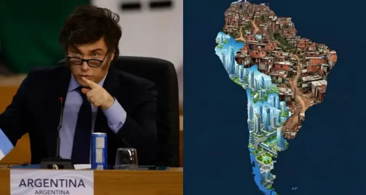 Milei compartilha imagem ideológica que associa países governados pela esquerda à pobreza na América do Sul Redação 16 de dezembro de 2025 Destaque, Notícias, ultimas notícias, ÚLTIMAS NOTÍCIAS O presidente da Argentina, Javier Milei, compartilhou na última segunda-feira (15) uma publicação de forte viés ideológico envolvendo países da América do Sul. A imagem trazia um mapa do continente no qual nações governadas por partidos de esquerda, como o Brasil, apareciam representadas por áreas associadas a favelas, enquanto países sob administrações de direita, entre eles a Argentina, eram retratados como territórios futuristas e desenvolvidos.De acordo com informações divulgadas nas redes sociais, a imagem não foi produzida por Milei. O conteúdo começou a circular entre apoiadores do presidente argentino no fim da noite de domingo (14) e ganhou maior alcance e repercussão política após ser repostado pelo chefe do Executivo em seu perfil oficial no Instagram.Além do contraste visual, a publicação original continha uma mensagem textual com crítica direta às gestões de esquerda no continente: “O povo sul-americano grita liberdade. Basta de socialismo empobrecedor”.O compartilhamento ocorreu poucas horas após a vitória do político de direita José Antonio Kast nas eleições presidenciais do Chile, o que reforçou o caráter ideológico da postagem e sua interpretação como um sinal de alinhamento político regional.