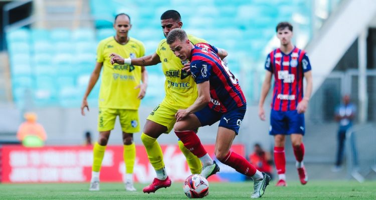 Bahia vence o Jequié por 4 a 2 e estreia com triunfo no Baianão 2026 Redação 11 de janeiro de 2026 Destaque, Esporte, Futebol, Notícias, ultimas notícias, ÚLTIMAS NOTÍCIAS De volta à Arena Fonte Nova após pouco mais de um mês, o Bahia estreou na temporada 2026 com vitória. Na tarde deste domingo (11), às 16h, o Tricolor bateu o Jequié por 4 a 2, pela primeira rodada do Campeonato Baiano, na Casa de Apostas Arena Fonte Nova.Com início dominante, o Bahia abriu o placar com um golaço de Jota. O Jequié reagiu e empatou com Tiago Recife, mas a joia da base Ruan Pablo brilhou e marcou dois gols ainda no primeiro tempo, recolocando o Tricolor em vantagem. Na segunda etapa, o Jipão diminuiu com um belo gol de Nael, porém Fredi apareceu nos minutos finais para fechar o placar em 4 a 2.Com o resultado, o Bahia assume a vice-liderança do Baianão, atrás apenas do Porto, ambos com três pontos. Já o Jequié inicia a competição na vice-lanterna.Próximos jogosO Tricolor volta a campo na quarta-feira (14), às 20h15, quando enfrenta o Bahia de Feira, na Arena Cajueiro. O Jequié joga no dia seguinte, quinta-feira (15), às 19h15, contra o Porto, no Waldomirão.O jogoO Bahia começou pressionando desde os primeiros minutos. Logo aos três, criou a primeira grande chance com Dell, que finalizou de primeira após sobra na área, exigindo boa defesa do goleiro André Lucas.Aos seis minutos, o Tricolor abriu o placar. Após pressão na saída de bola do Jequié, Dell finalizou, a bola desviou na defesa e sobrou para Jota, que bateu de primeira para marcar um belo gol.O Jequié chegou ao empate aos 23 minutos. João Grilo foi lançado em profundidade, acertou a trave em chute cruzado e, no rebote, Tiago Recife completou para o fundo das redes.A resposta do Bahia foi rápida. Aos 35, Ruan Pablo aproveitou rebote do goleiro após chute de Pedrinho e colocou o Tricolor novamente à frente. Seis minutos depois, a jovem promessa marcou mais uma vez, após jogada pela direita e nova sobra dentro da área, fazendo o terceiro gol do Bahia.Na volta do intervalo, o Jequié acertou a trave logo aos dois minutos e seguiu tentando reagir. Aos 18, Nael marcou um golaço ao driblar a marcação e finalizar com categoria, diminuindo o placar.Nos acréscimos, aos 48 minutos, Fredi subiu mais alto após cobrança de escanteio e marcou de cabeça, decretando a vitória do Bahia por 4 a 2.Ficha técnicaBahia 4 x 2 JequiéCampeonato Baiano – 1ª rodadaLocal: Casa de Apostas Arena Fonte Nova, SalvadorData: 11/01/2026Horário: 16hÁrbitro: Marielson Alves SilvaAssistentes: Luanderson Lima dos Santos e Antonielson Jesus da SilvaOnde assistir: TV Brasil; TVE (TV); TV Bahêa e TVE (YouTube)Cartões amarelos: Luiz Fernando e Jô (Jequié)Gols:Bahia – Jota, Ruan Pablo (2) e FrediJequié – Tiago Recife e NaelBahia: João Paulo; Fredi, Marcos Victor, Luiz Gustavo e Zé Guilherme (Iago Borduchi); Rezende (Erick), Jota (Rodrigo Nestor) e Pedrinho (David Martins); Ruan Pablo, Kauê Furquim e Dell.Técnico: Rogério CeniJequié: André Lucas; Carlos, William Mineiro, Weverton e Erick Daltro; Walfrido, Joedson, Luiz; Cássio, Tiago (Edilson Júnior) e Nael.Técnico: Rodrigo Fonseca